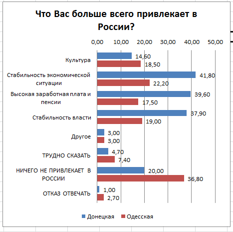 Привлекательность Российской Федерации по-разному воспринимается Юго-Восточными областями.